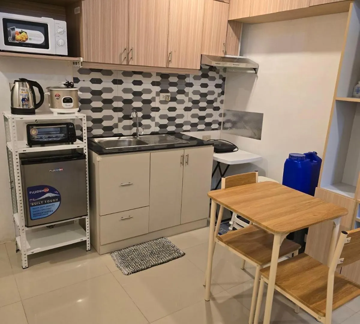 Homey Airport Bnb 1Br W Wi-Fiアパートの設備の整った台所を利用でき、おいしい自家製の食事を作ることができます。 市内各地への接続が良好なSDBTODI Tricycle Terminalバス停は、アパートすぐ近くです。